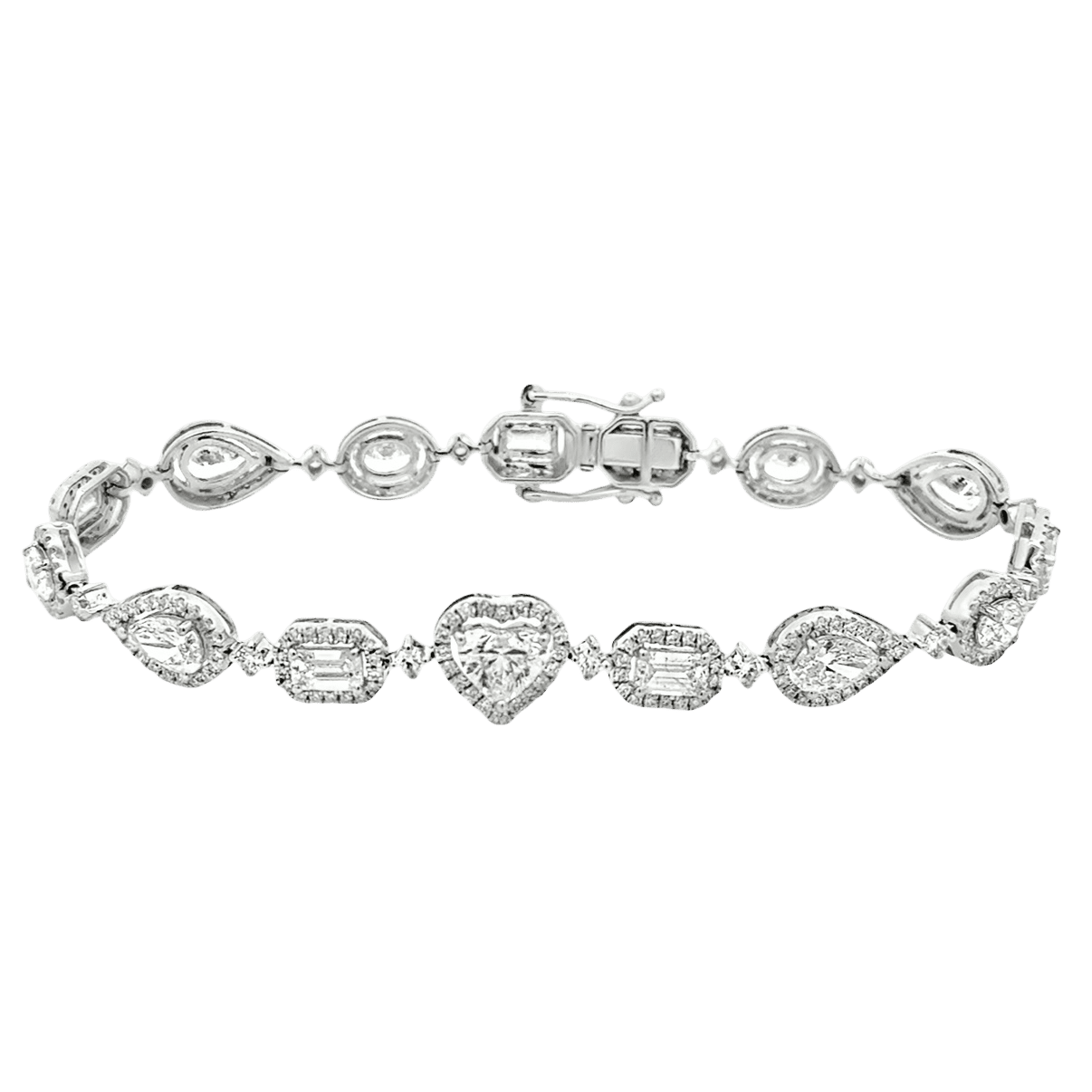 18ct White Gold Lab Diamonds Halo Shapes Tennis Bracelet