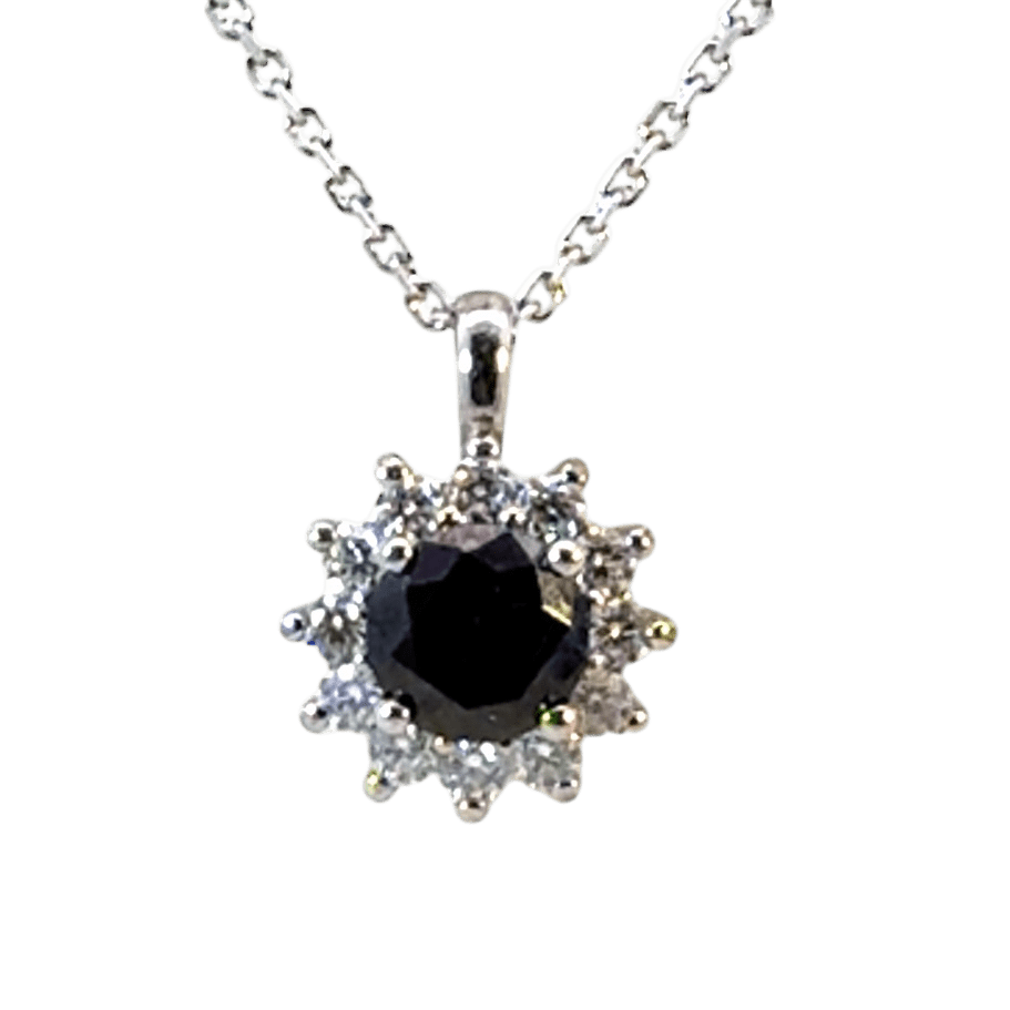 9ct White Gold Floral Halo Pendant On a 45cm 9ct White Gold Chain